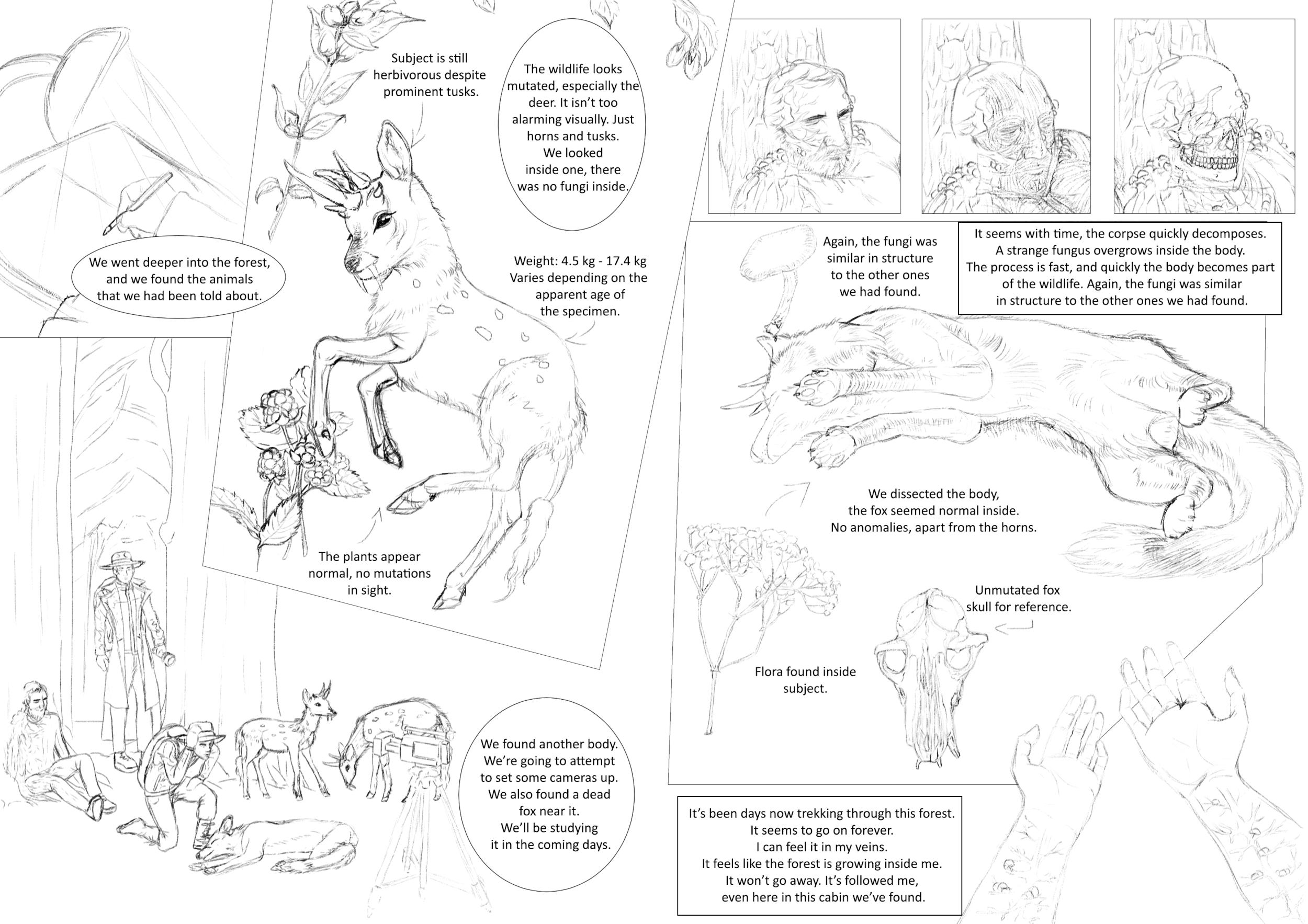 The Forest is an interactive comic that explores the horrors that a group encounters in the woods and the mutations found inside the bodies.